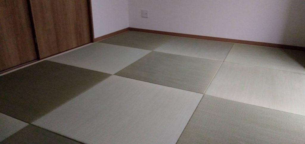 同じ畳表で作ったのですが、畳を置く方向によって色が変わって見えます。